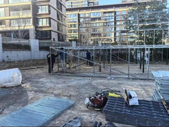 事情要从头说起。前几日,家住郑州市二七区华侨城的冯女士无意间发现窗外楼下“冒”出一个施工现场,工人正忙着搭建铁架子。